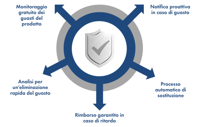 I guasti del prodotto vengono riconosciuti in tempi brevi, le diagnosi e le relative soluzioni vengono messe a disposizione rapidamente